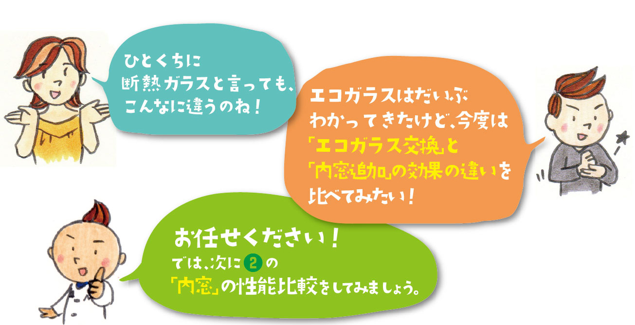 内窓の性能比較と、シングルサッシのままペアガラスに換えた場合を比較してみましょう!